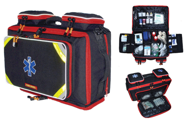 다양한 응급상황 발생 시 현장에서 최적의 응급처치 대응환경이 가능하게끔 되어있는 국제 표준 전문 응급키트 개념이 적용된 구성품 가방