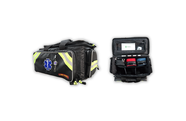 ● 전체 외부 수납공간은 원형 야간 반사 파이프가 부착되어 있고, 가방 상단과 측면부에 야간 반사띠와 야광띠가 있다.