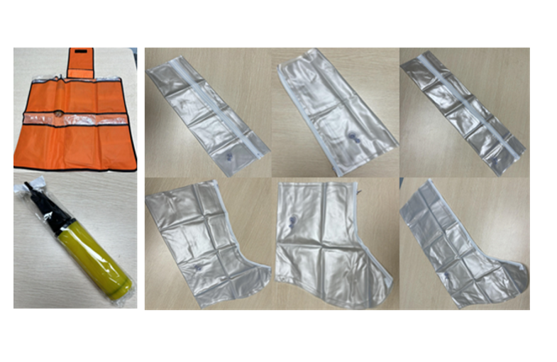 각 부위별로 나뉘어 있는 주머니에 공기를 주입하여 골절부위를 고정하는 장비