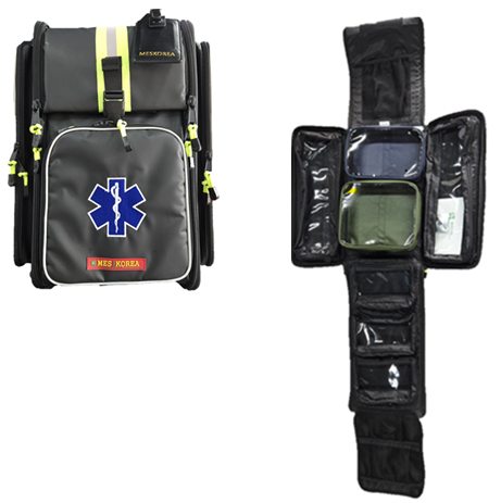 ● 전체 외부 수납공간은 원형 야간 반사 파이프가 부착되어 있고, 가방 상단과 측면부에 야간 반사띠와 야광띠가 있다.