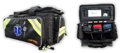 ● 전체 외부 수납공간은 원형 야간 반사 파이프가 부착되어 있고, 가방 상단과 측면부에 야간 반사띠와 야광띠가 있다.